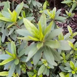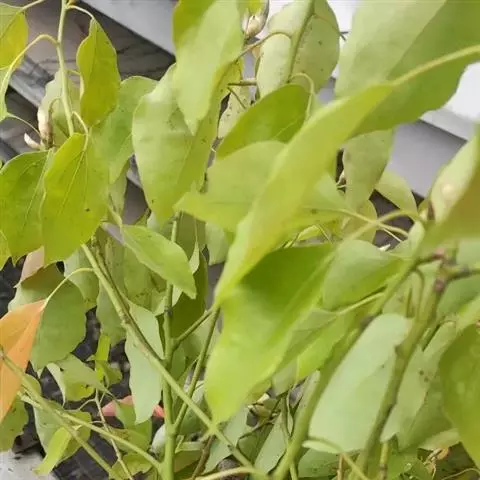 叶互生,纸质,厚实,幼叶青色,成熟叶色浓绿,背面泛白,自然脱落后褐色,叶片集生于枝端,椭圆形至椭圆状披针形,先端急尖,具短尖头,基部锲形、叶片毛少,表面有淡黄色伏帖毛,背面淡绿色,疏被黄色伏帖毛。先叶后花。