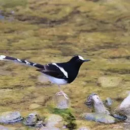 白喉红尾鸲,小型鸟类,体长14-16厘米。雄鸟额至枕钴蓝色,头侧、背、两翅和尾黑色,翅上有一大形白斑,…