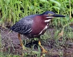 绿鹭:是鹳形目鹭科绿鹭属鸟类。体型小,头顶黑,枕冠亦黑色,上体蝉灰绿色,…