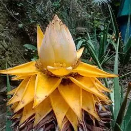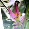紫苞芭蕉形如一枝亭亭玉立、含苞待放的荷花,但却开在高高的芭蕉树上,这就是紫苞芭蕉。