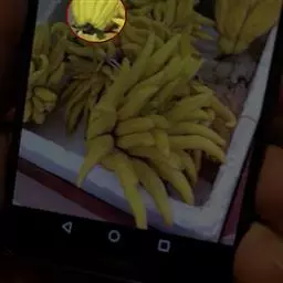 最大的果丛有果360个之多,重可达32公斤,一般的果丛有果8~10段,约有果150~200个。果身弯曲,略为浅弓形,幼果向上,直立,成熟后逐渐趋于平伸,长12~30厘米,直径3.4~3.8厘米,果棱明显,有4~5棱,先端渐狭,非显著缩小,果柄短,果皮青绿色,在高温下催熟,果皮呈绿色带黄,在低温下催熟,果皮则由青变为黄色,并且生麻黑点(即“梅花点”),果肉松软,黄白色,味甜,无种子,香味特浓。