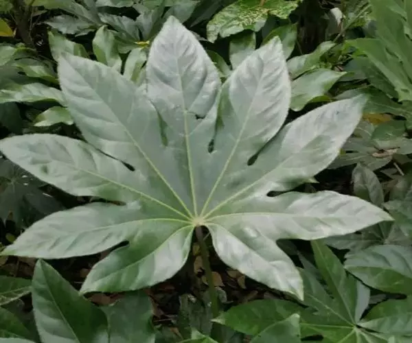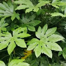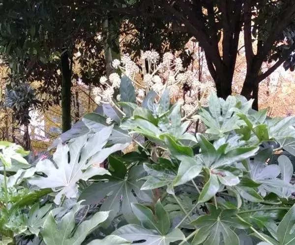 八角金盘,因其掌状的叶片,裂叶约8片,看似有8个角而名。它叶丛四季油光青翠,叶片象一只只绿色的手掌。其性耐荫,在园林中常种植于假山边上或大树旁边,还能作为观叶植物用于室内,厅堂及会场陈设。叶或根皮可入药,性温味辛、苦,具有化痰止咳,散风除湿,化瘀止痛之功效。常用于咳喘,风湿痹痛,痛风,跌打损伤。