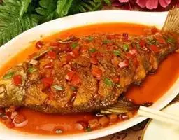 香酥鲫鱼由净鲫鱼5条(每条约250克),油1000克,酱油75克,葱100克,姜1块,黄酒30克,糖150克,味精、醋各少许制作而成的一种酥鱼。