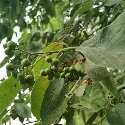 粗糠树 落叶乔木,高约15米,胸高直径20厘米;树皮灰褐色,纵裂;枝条褐色,小枝淡褐色,均被柔毛。叶宽椭圆形、椭圆形、卵形或倒卵形,长8-25厘米,宽5-15厘米,先端尖,基部宽楔形或近圆形,边缘具开展的锯齿,上面密生具基盘的短硬毛,极粗糙,下面密生短柔毛;叶柄长1-4厘米,被柔毛。聚伞花序顶生,呈伞房状或圆锥状,宽6-9厘米,具苞片或无;花无梗或近无梗;苞片线形,长约5毫米,被柔毛;花萼长3.5-4.5毫米,裂至近中部,裂片卵形或长圆形,具柔毛;花冠筒状钟形,白色至淡黄色,芳香,长8-10毫米,基部直径2毫米,喉部直径6-7毫米,裂片长圆形,长3-4毫米,比筒部短;雄蕊伸出花冠外,花药长1.5-2毫米,花丝长3-4.5毫米,着生花冠筒基部以上3.5-5.5毫米处;花柱长6-9毫米,无毛或稀具伏毛,分枝长1-1.5毫米。核果黄色,近球形,直径10-15毫米,内果皮成熟时分裂为2个具2粒种子的分核。花期3-5月,果期6-7月。