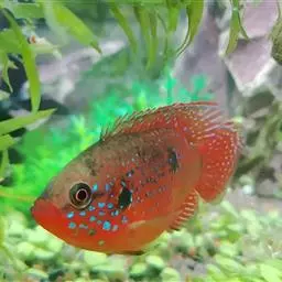 红宝石鱼是鲈行目慈鲷科伴丽鱼属 鱼类,又名红花鲈、宝石鱼。个体较大,身长12—15厘米。背鳍宽大,…