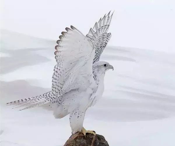 在冰岛少数冰天雪地的高寒地区,矛隼为了适应环境还会出现遍体洁白的个体,因此又叫白隼。