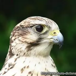 矛隼(学名:Falco rusticolus):是隼科的一种,体长60厘米,翼展105-135厘米,体重1000-2150克。嘴、脚强健并具利钩,适应于抓捕及撕食猎物。喙基具蜡膜;翅强而有力,善疾飞及翱翔。索腭型头骨。脚和趾强健有力,通常3趾向前,1趾向后,呈不等趾型。头骨宽阔,上眼眶骨扩大,眼球较大,视野宽阔,视觉敏锐;听觉发达。