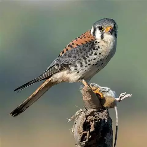 燕隼:是隼科、隼属的鸟类。体长约36厘米,体重140-340克。体形比猎隼、游隼等都小,为小型猛禽,…