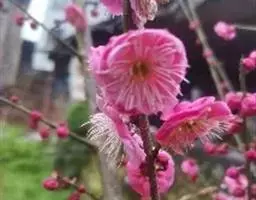 四、千瓣桃红:花为粉红色,多为三轮花瓣,花丝粉红。有些花则略近红色,花丝红色,花枝袍红。