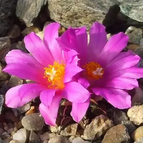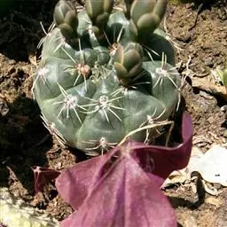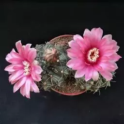 绯花玉 Speg.)是仙人掌科、裸萼球属多肉植物,植株呈扁球形,表皮墨绿色,刺针状,…