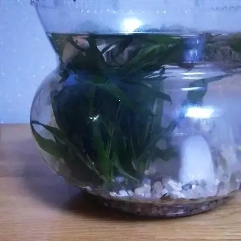 水兰是生长在半水生环境中的,单子叶植物,具有一豆大的短茎,并由此长出莲座生线型的翠绿色叶,叶多肉,叶缘在放大镜下观察有锯齿,没有叶柄,叶型狭长,约40~150mm,通常水越深,叶较长,末端呈圆钝形。
