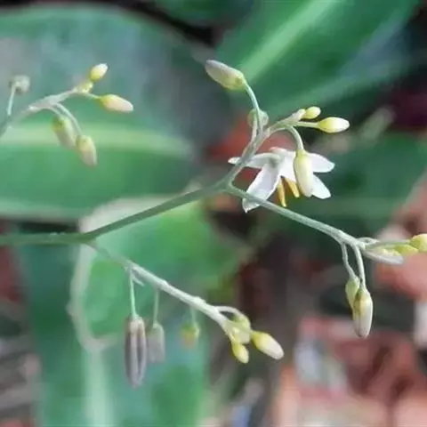 银边山菅兰为多年生草本,叶丛生长带状,边缘有淡黄色边,圆锥状花序生自基部,直立,花黄色。观叶植物。