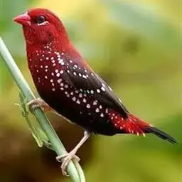 红梅花雀小型鸟类,体长9-10厘米。雄鸟通体朱红色,背、肩、胸等满布白色小斑点,…