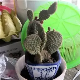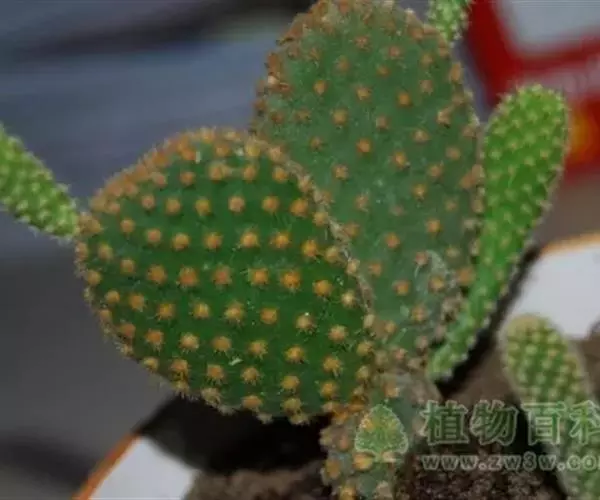 黄毛掌茎节似兔耳,是室内盆栽较普遍的小型盆栽花木,适宜摆放在卧室、书房,也可摆放在厨房。黄毛掌对二氧化硫、氯化氢的抗性较强,对一氧化碳、二氧化碳、过氮氧化物的吸收能力强,吸收分解后能释放出新鲜氧气,还可增加室内负离子数量。