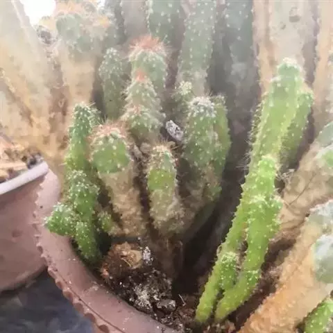 姬珊瑚为仙人掌属植物。姬珊瑚又叫仙人条,是一种灌木状的多肉盆栽植物,属于双子叶植物,浑身长满尖刺,…