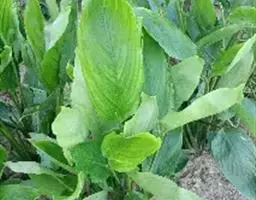 多年生草本,无茎。叶片长圆状披针形,长25-45厘米,宽约10厘米,顶端急尖,基部圆形或楔形,下部边缘波状;叶柄细长。