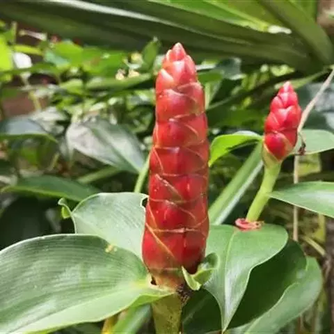 珊瑚姜是姜科、姜属植物。株高近1米。叶片长圆状披针形或披针形,长20-30厘米,宽4-6厘米,…