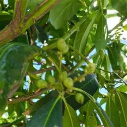 栽培季节以春季最好,其他季节栽培应修剪部分枝叶,减少叶面水分蒸腾,提高成活率。小苗需带宿土,大苗带土球移栽。选用2年生以上粗壮苗。大穴整地,穴规格为50厘米×50厘米×40厘米,株距3-4米,穴底施基肥。栽植时,先回填表土,再填心土,分层踩紧踏实,栽植深度与原根际痕齐平。栽后浇透定根水,成活后可施追肥,促进幼林生长。