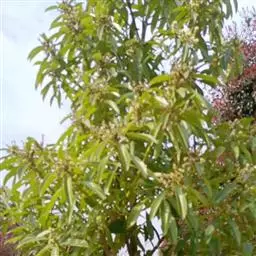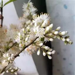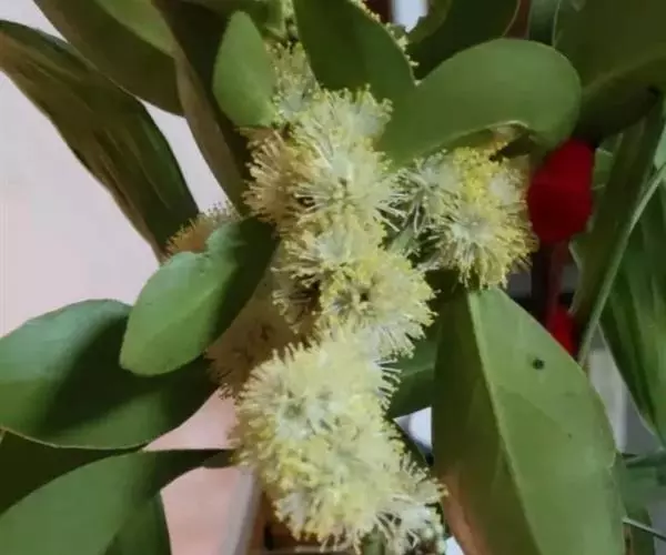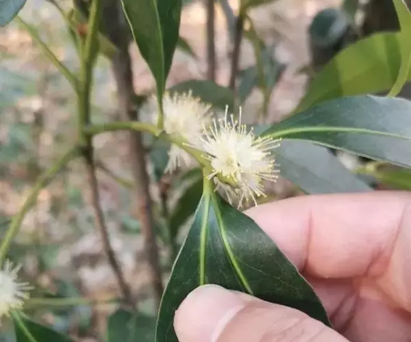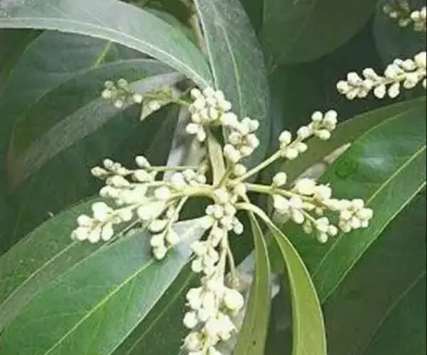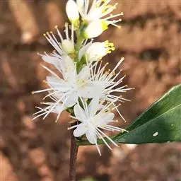 穗状花序基部有分枝,长约6厘米,其分枝长约3厘米,密被短柔毛;苞片卵形,长约3毫米,小苞片横椭圆形,宽约3毫米;花萼5裂,长约4毫米,无毛,裂片圆形,稍长于萼筒或等于萼筒,有缘毛;花冠白色,长约6毫米,5深裂几达基部,有极短的花冠筒,裂片椭圆形;雄蕊40-50枚,花丝基部联生成五体雄蕊;花盘有毛和腺点,花柱长约3毫米,柱头盘状。核果长圆形,长约15毫米,直径约8毫米,顶端宿萼直立,核骨质,分开成3分核。花期3-4月,果期8-10月。