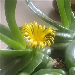 照波,番杏科多肉植物、此种生长较快,栽培容易,细长的浓绿色叶3厘米左右,开黄色花。…