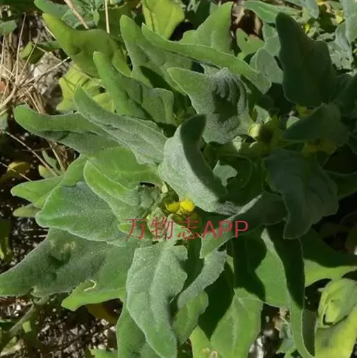 叶片卵状菱形或卵状三角形,长4-10厘米,宽2.5-5.5厘米,边缘波状;叶柄肥粗,长5-25毫米。