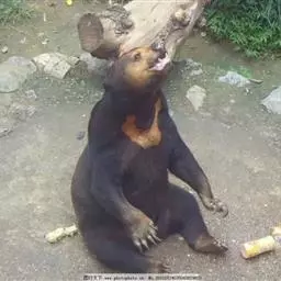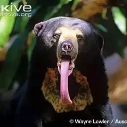 马来熊,是食肉目熊科马来熊属哺乳动物。体胖颈短,眼睛和耳朵小;头部短圆;全身乌黑光滑;鼻唇周为棕黄色,…