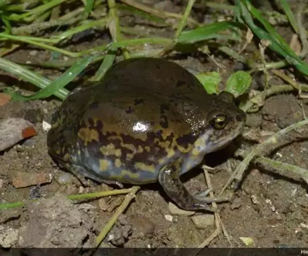 北方狭口蛙栖息于海拔50-1200m的地区平原和山区,常选择水坑附近的草丛中或土穴内或石下作为栖息位点。