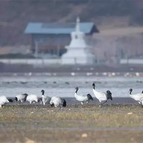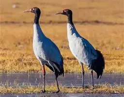 黑颈鹤:是鹤科、鹤属的大型涉禽,体长110-120厘米,体重4-6千克。颈、脚甚长,通体羽毛灰白色,…