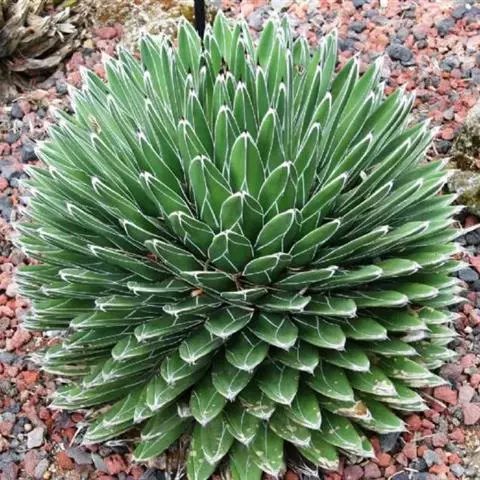 皇后龙舌兰是天门冬科、龙舌兰属多年生草本多浆植物。无主茎,叶丛生,莲座状,株幅40厘米。叶较多,…