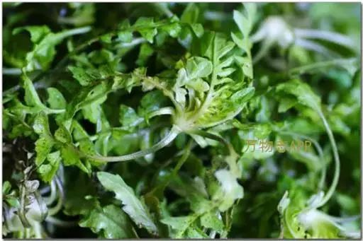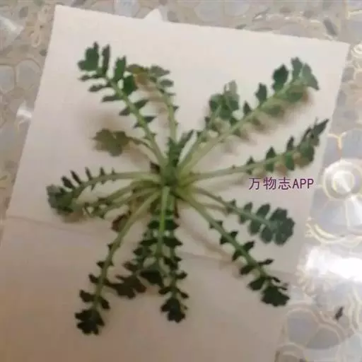 散叶荠菜又叫百脚荠菜、慢荠菜、花叶荠菜、小叶荠菜、碎叶荠菜、碎叶头等。植株塌地生长,开展度18厘米;叶片绿色,羽状全裂,叶缘缺刻深,长10厘米,叶窄较短小,有20片叶左右,绿色,叶缘羽状深裂,叶面平滑绒毛多,遇低温后叶色转深,带紫色。