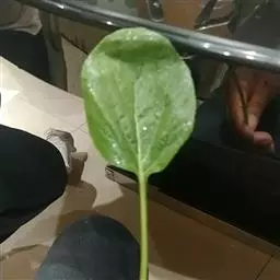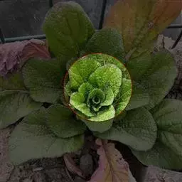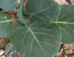 植株塌地生长,开展度18厘米。叶片浅绿色,大而厚,叶长10厘米,宽2.5厘米,有18片叶左右。叶缘羽状浅裂,近于全缘,叶面平滑,稍具绒毛,遇低温后叶色转深。