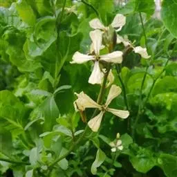 3.做好种子田的管理工作 前期的肥水管理、除草。防虫等措施与商品荠菜田相同。但在2月份去杂劣后,必须及时追施腐熟淡水粪1次,促使种株发好棵,使其根深叶茂,营养生长健壮。在抽苔现蕾后,应增施磷、钾肥,可结合防治虫害,在农药内加入0.3%的磷酸二氢钾液喷施。这不仅能增强种株的抗逆能力,而且有利于多结种菜荚并促进籽粒饱满。平时特别要勤查勤防蚜虫。即使至4月20日种株已进入结荚乳熟期,仍应防治蚜虫一次,否则会因蚜虫猖獗而使籽粒不饱满,造成种子歉收。平时亦须做好修沟理沟工作,以防雨水多时造成涝灾。