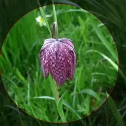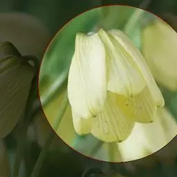 花贝母为多年生球根花卉。株高70厘米左右,叶卵状披针形至披针形。株顶着花,花冠钟形,数朵围绕茎干下垂生长于叶状苞片群下,非常独特。其栽培历史悠久,约400年,栽培品种较多,有各种花色,如黄、红色等及重瓣类型。