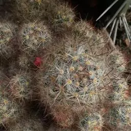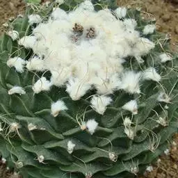 松霞是仙人掌科乳突球属的多年生肉质植物。单个球体小,呈圆筒状,暗绿色,疣状突起小,呈圆形,刺座无毛,…