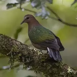 绿皇鸠(学名:Ducula aenea)体形比绿鸠类和果鸠类大,体长36-38厘米,体重508-600克。嘴也较大,嘴基扩张,身体上的杂色通常较少。头部、颈部和下体为鸽灰色,微缀粉葡萄红色,尾下覆羽为暗栗色。前额和额为白色,背部、肩部、腰部、尾上覆羽和翅上覆羽均为亮金属铜绿色或墨绿色,上背和两肩有时还带有紫红色的红铜色光泽,背部和腰部有时还具有黑色的羽端。有的个体的头顶至后颈、以及面颊和耳覆羽呈棕灰色、紫灰色或棕栗色。栖息于平原、河谷和丘陵地带的阔叶林和次生林中,也出现于居民点附近的小块丛林及榕树和橄榄树上。常单个或成对活动,冬天也成群活动。主要以榕果等植物果实为食,特别是乌榄。分布于印度、缅甸、泰国、巴基斯坦、中南半岛、菲律宾和印度尼西亚。