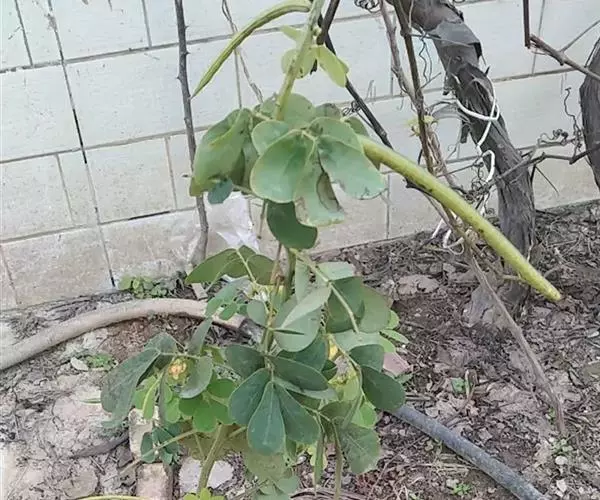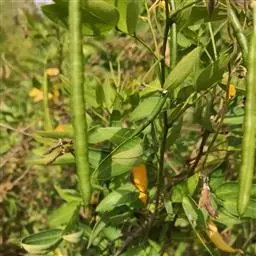 荚果纤细,近四棱形,两端渐尖,长达15厘米,宽3-4毫米,膜质;种子约25颗,菱形,光亮。花果期8-11月。