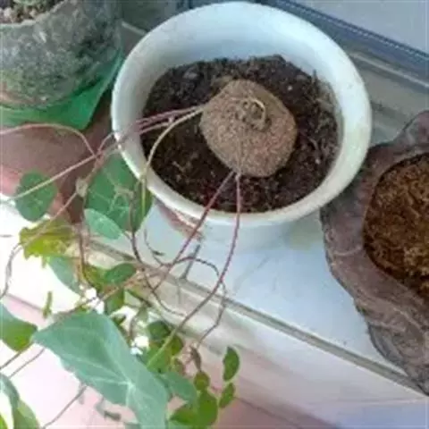 1、地不容:多年生草质落叶藤本,长达数米;全株无毛。块根硕大,扁球形,直径可达30cm,外皮暗灰褐色,通常露于地面。茎下部稍木质化,嫩枝稍肉质,常紫红色,干时显直线纹。叶互生;叶柄长4-6cm,有时达11cm,盾状着生于距叶片基部1-2cm处;叶片扁圆形或近圆形,长3-5(-7.5)cm,宽5-6.5(-9)cm,先端圆或偶有小突尖,基部略圆,全缘,上面深绿色,略有光泽,下面呈白粉状;掌状脉向上的5条,向下的5-6条,纤细,纸质。花小,单性,雌雄异株;雄株为单伞形聚伞花序,总花序梗长1-4cm,有时只有5mm,簇生数个至10多个小聚伞花序,每个小聚伞花序有2-7朵;雄花:萼片6,排成2轮,卵形或椭圆形状卵形,长1.5-1.6mm;先端短尖或短渐尖,花瓣3,紫色,稍肉质,阔楔形或近三角形,长约0.7mm,内面无腺体;雌株为单伞形聚伞花序,但较紧密,总花序梗长1-3cm;花被左右对称,萼片1,倒卵形或匙状倒卵形,长0.8-0.9mm,生于花的一侧;花瓣1或有时2,倒卵状圆形或阔倒卵形,长0.8-1mm;子房倒卵形。核果红色,倒卵形,果梗短,肉质;内果皮长6-7mm,宽约5mm,背部有2行小横肋状雕纹,每行16-20条,胎座迹不穿孔。花期5-6月,果期6-8月。