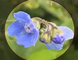 花茎长20-30厘米,总状分枝,每个分枝处着生4-6枚膜质的苞片;苞片卵形,长约1.5厘米,钝头,其中包含有3-5朵花;花浅蓝色或白色,直径5-5.5厘米;花梗与苞片等长或略长;花被管长约1.5厘米,外花被裂片椭圆形,长约3厘米,宽约2厘米,顶端微凹,边缘波状皱褶,有疏牙齿,爪部楔形,内花被裂片倒宽披针形,长约2.5厘米,宽约1厘米,顶端微凹;雄蕊长约1.5厘米,花药黄白色;花柱分枝淡蓝色,长约2厘米,宽约8毫米,顶端裂片呈繸状,子房绿色,柱状纺锤形,长约6毫米。蒴果椭圆形,长2.5-3.5厘米,直径1-1.4厘米,表面有网状的脉纹及6条明显的肋;种子黑褐色,长3-4毫米,宽约2.5毫米,无附属物。花期4月,果期5-7月。