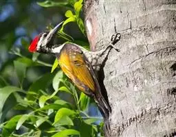 栗啄木鸟:是一种红褐色啄木鸟,体长21厘米。雄性成鸟整个头棕色,…