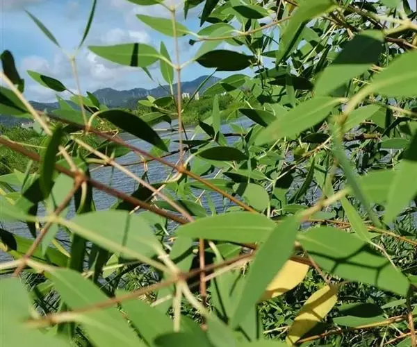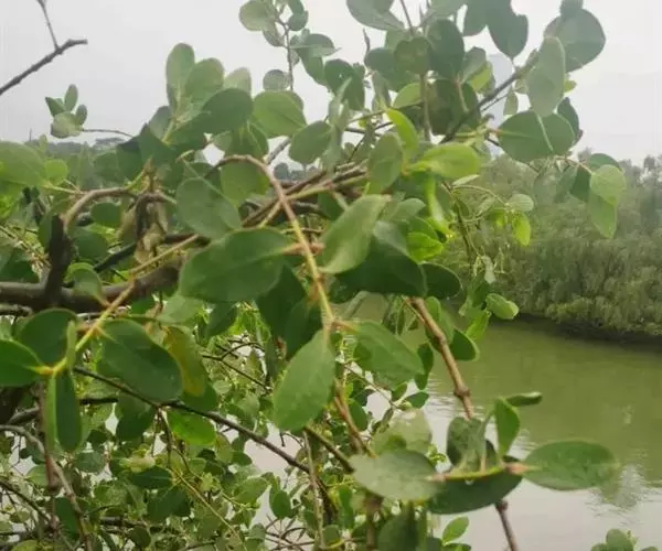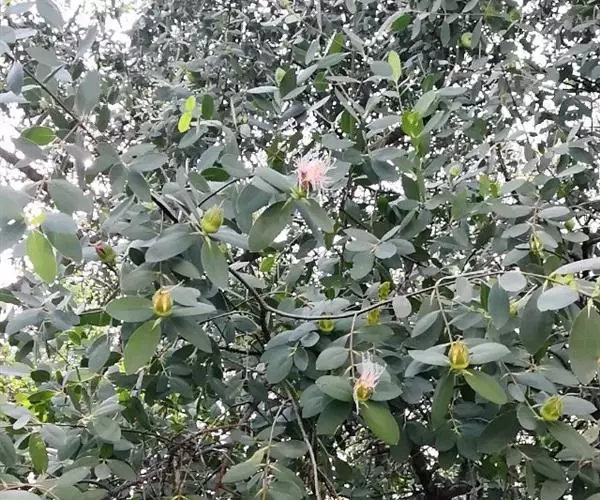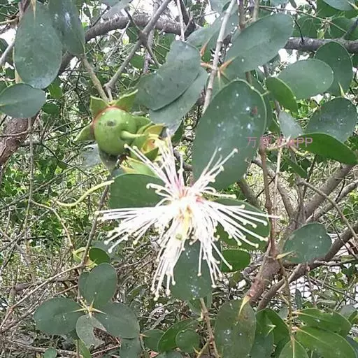 海桑 乔木,树干基部周围很多与水面垂直而高出水面的呼吸根。 高5-6米;小枝通常下垂,有隆起的节,幼时具钝4棱,稀锐4棱或具狭翅。叶形状变异大,阔椭圆形、矩圆形至倒卵形,长4-7厘米,宽2-4厘米,顶端钝尖或圆形,基部渐狭而下延成一短宽的柄,中脉在两面稍凸起,侧脉纤细,不明显;叶柄极短,有时不显著。