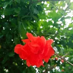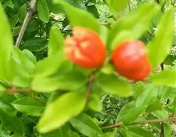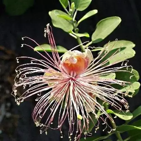 花具短而粗壮的梗;萼筒平滑无棱,浅杯状,果时碟形,裂片平展,通常6,内面绿色或黄白色,比萼筒长,花瓣条状披针形,暗红色,长1.8-2厘米,宽0.25-0.3厘米;花丝粉红色或上部白色,下部红色,长2.5-3厘米;花柱长3-3.5厘米,柱头头状。成熟的果实直径4-5厘米。花期冬季,果期春夏季。