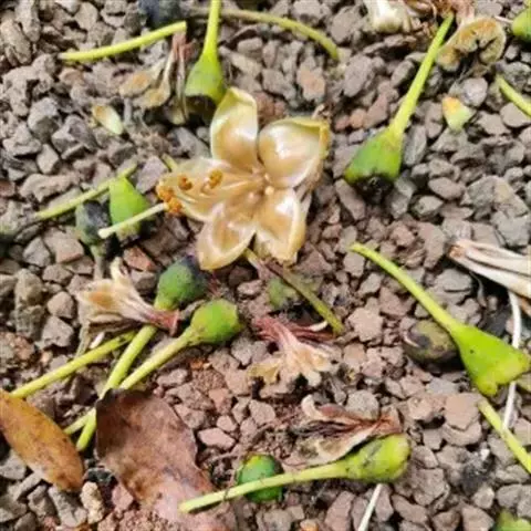 物种现状:濒危种。为发现的稀有物种,分布区极狭小,仅有5株,树高8米的仅有1株,其基围2.3米,树冠扩展,其余株比较矮小,散生于林缘。公于海南辩证齐县海边的红树林内,林地距离低潮线80-100,粮有时地面高有线20-30厘米。