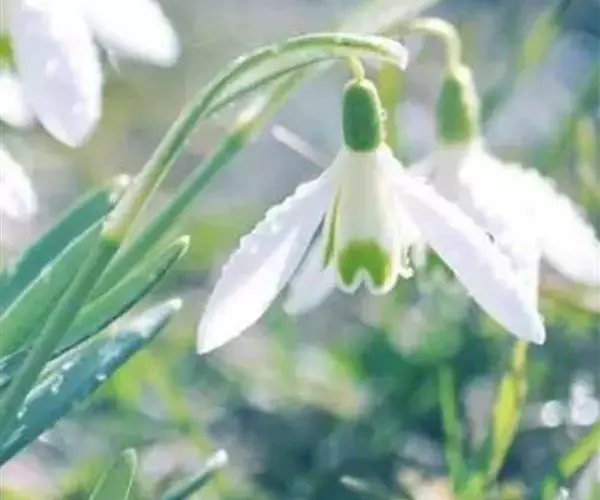 雪花莲在欧洲以报春花而闻名,属水仙花科。在茎的末端两三朵白色的花低垂着,以伞形花序的状态下垂盛开。花的形状和银兰相似,都是呈钟状。在花瓣末端,有绿色的点状花纹,同时散发着淡淡的香气。