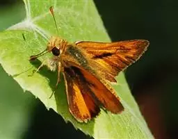 姜弄蝶 Udaspes folus ,又叫银斑姜蝶。幼虫吐丝粘叶成苞,隐藏其中取食,…