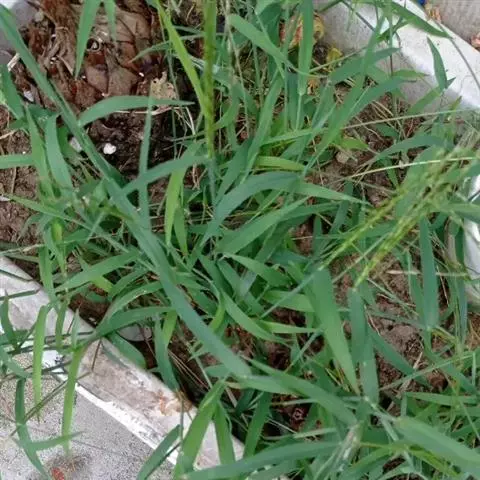 紫马唐,别名:五指草,拉丁文名:Digitaria violascens Link.,是单子叶植物纲、禾本科、马唐属 一年生直立草本。秆疏丛生,基部倾斜,具分枝,无毛。叶鞘短于节间,无毛或生柔毛;叶片线状披针形,质地较软,扁平,粗糙,基部圆形,无毛或上面基部及鞘口生柔毛。边缘微粗糙;小穗椭圆形,小穗柄稍粗糙;第一颖不存在;第二颖稍短于小穗,脉间及边缘生柔毛;脉间及边缘生柔毛;毛壁有小疣突,中脉两侧无毛或毛较少,顶端尖,有纵行颗粒状粗糙,紫褐色,革质,有光泽; 花果期7-11月。
