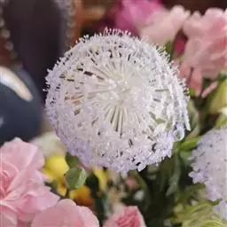 花:着生于花茎顶端,开花前,正在发育的伞形花序藏于总苞内。营养器官充分生长的葱株,一个花序有花400-500朵,多者可达800以上。两性花,异花授粉。每朵花有花被6片,雄蕊6枚。雌蕊成熟时,花柱长1cm。子房上位,3室,每室2粒。