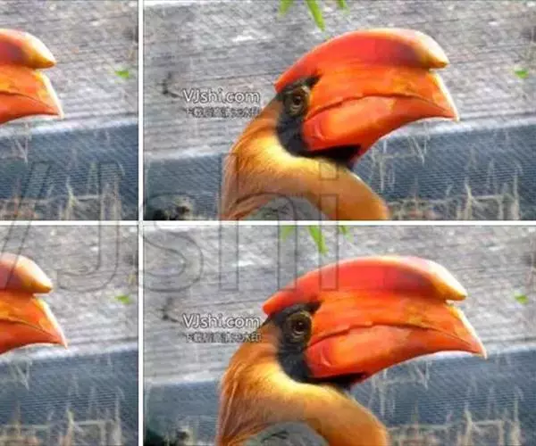 经过科学家研究发现,它的嘴和盔突是中空的,里面如同蜂可咐,充满了空隙,这样能够减轻重量,虽然轻巧却非常坚固 。