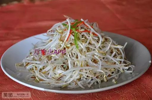 ⒊取一大盘,将豆芽倒入盘中,加盐、味精、醋、香油拌匀即成。