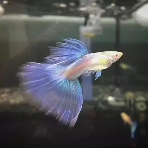 蓝化体蓝尾(Blue Tail):尾色较深,子代只有蓝化体蓝一种性状,见得最多的就是欧系的不会跑红的蓝尾礼服。致色原因是蓝反射细胞+黑色素细胞。