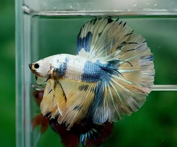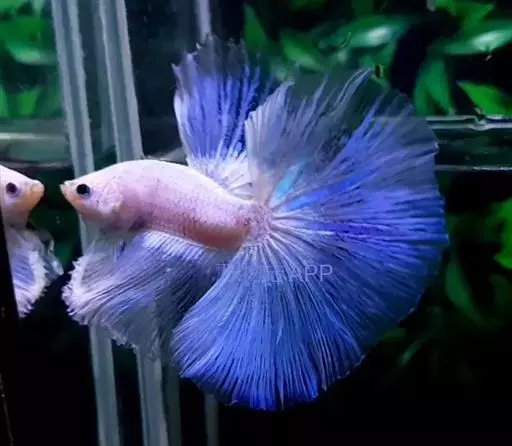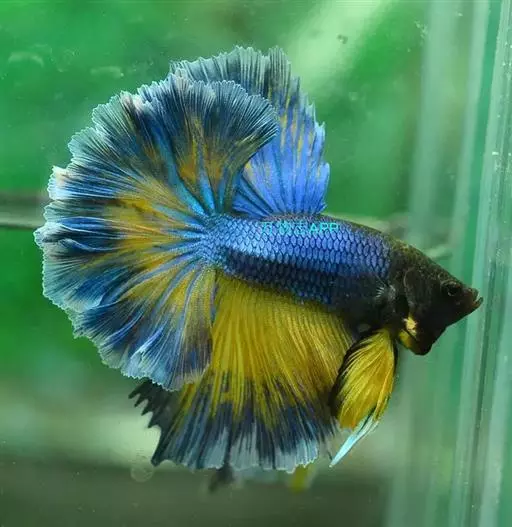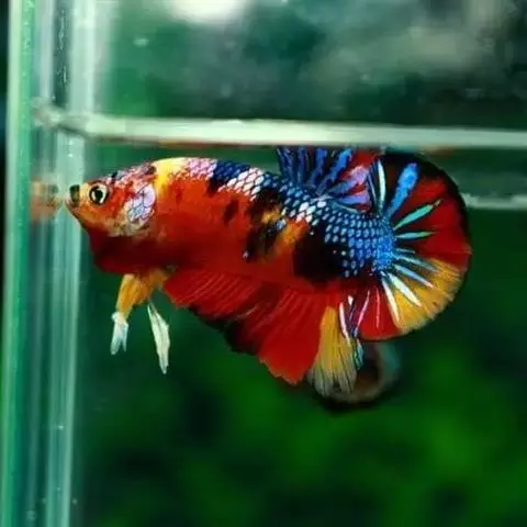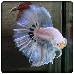 杂合子蓝尾(Heterozygote Blue Tail):俗称“Bb蓝”,子代会分离出杂合子蓝尾(约50%)、蓝化体蓝尾(约25%)、红尾(约25%)三种性状,一般来看杂合子蓝颜色较浅,但要想确知,必须通过测交来确定。致色原因是蓝反射细胞+黑色素细胞